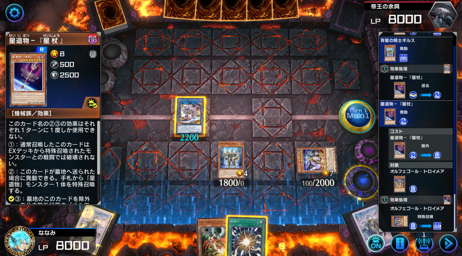 この二つです。星冠を手札に用意する手段は基本的にガラテアiのみです。星冠は除外されていることはほとんどないのでそれ以外の場合は既に場に出していると思います。次に星杖を墓地に送る手段はエンリルギルスで手札に回収してガラテアiで捨てるが一番多いです。トロイメアやギルスなどでも送れますが基本はトロイメアはシリウス、ギルスはスケルツォンを落とす役割が優先的なのであまり杖を相手のターンに落とすことはないです。なので星冠を相手ターンに出したいとき除外状態の星杖をガラテアでデッキに戻さないようにしましょう。